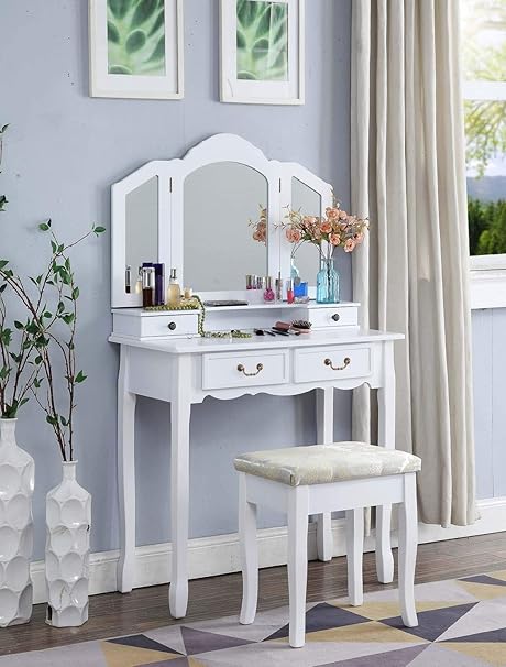 Buy M W 42 5 Large Makeup Vanity Table Set With Tri Folding Mirror Dressing Table And Cushioned Stool With 7 Drawers For Bedroom Gift For Women White Online In Turkey B07x7571r7 from m.media-amazon.com The dressing table can also double as a. This is the homes direct 365 mirrored vanity table range. 70 distributors in china, furniture supplier of asian. When you are sitting on it and dressing yourself, you will feel that it's really an enjoyment. Look for mirrored dressing table set. If you want to add a touch of modern, elegant flair to your bedroom with an attractive mirrored dressing table, there are many reputable furniture retailers offer. All drawers are lined with new papers with crystal nabs. I purchased the tiffany dressing table set for my daughter for christmas it absolutely beautiful and well worth the money and a bargain at that price.